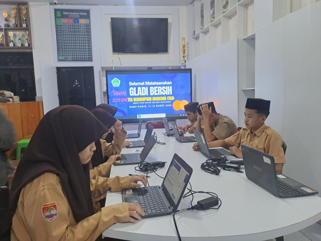 – SMPIT Plus Baitul Ma’arif Makassar Pelaksanaan “Gladi Bersih” Tes Kemampuan Akademik (TKA) sebagai bagian dari kegiatan bagi santri kelas 9 SMPIT Plus Baitul Ma’arif Makassar memasuki hari kedua pada hari Kamis, 12 Maret 2026, di lokasi SDIT Ma’arif Makassar. Kegiatan yang dimulai pukul 07.30 WITA ini diikuti oleh seluruh santri kelas IX dengan suasana yang kondusif dan teratur.