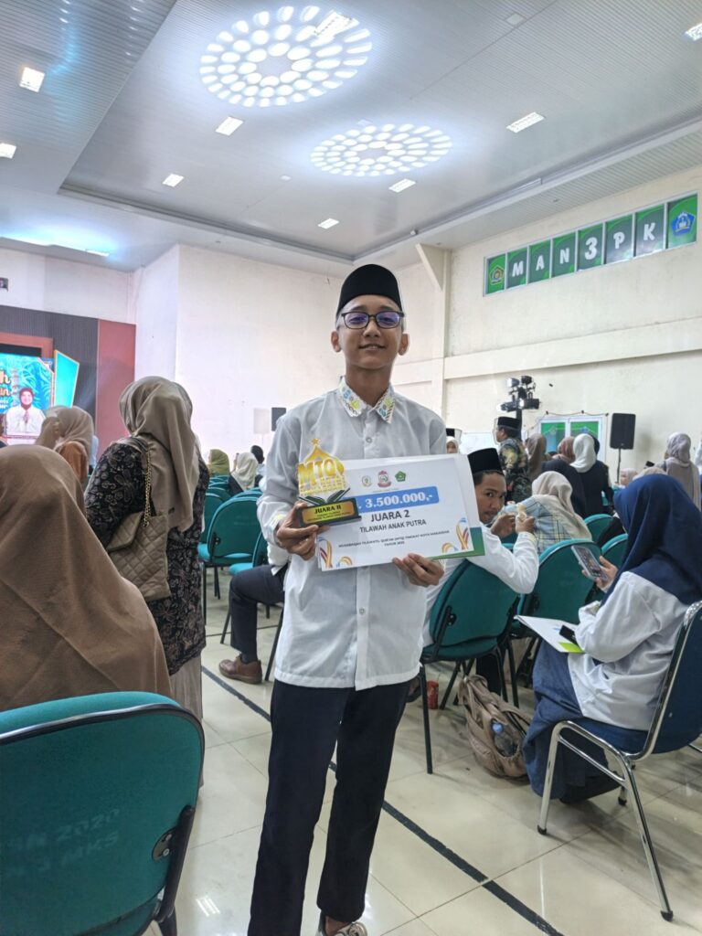 -SMPIT Plus Baitul Ma’arif Makassar, kembali menorehkan prestasi membanggakan. Santri kelas VII, Naufal Alwi Ikhsan, berhasil meraih Juara 2 dalam kategori Tilawah Anak Putra pada ajang “Musabaqah Tilawatil Qur’an (MTQ) Tingkat Kota Makassar Tahun 2025”. Ajang lomba ini diselenggarakan di Kecamatan Biringkanaya, Makassar, pada 23 November 2025.