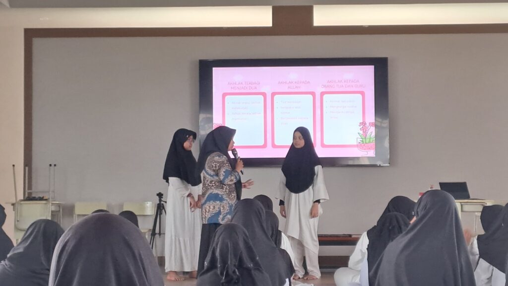 – Akhlak: Santriwati diajarkan tentang nilai-nilai akhlak mulia sesuai ajaran Islam, termasuk sikap hormat kepada orang tua dan guru, kejujuran, serta sikap saling menghargai antar sesama.
