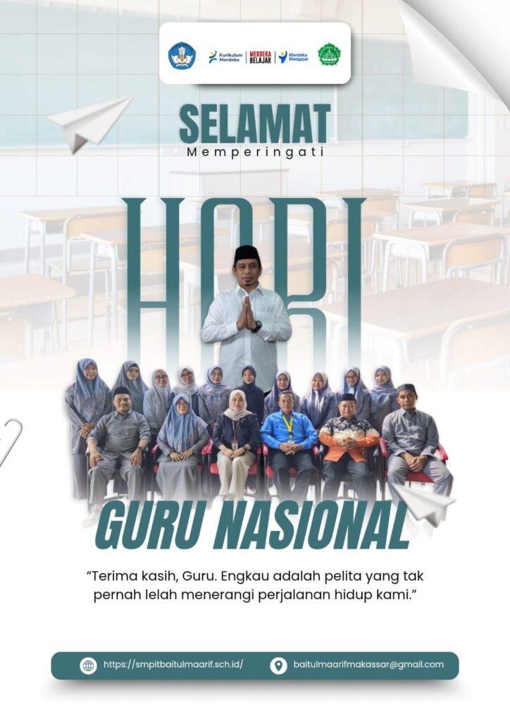 -SMPIT Plus Baitul Ma’arif Makassar turut memperingati Hari Guru Sedunia yang jatuh pada tanggal 5 Oktober 2025. Momentum ini menjadi kesempatan berharga untuk memberikan penghargaan setinggi-tingginya kepada para guru yang telah berjuang dengan penuh dedikasi dalam mendidik, membimbing, dan menginspirasi generasi penerus bangsa.