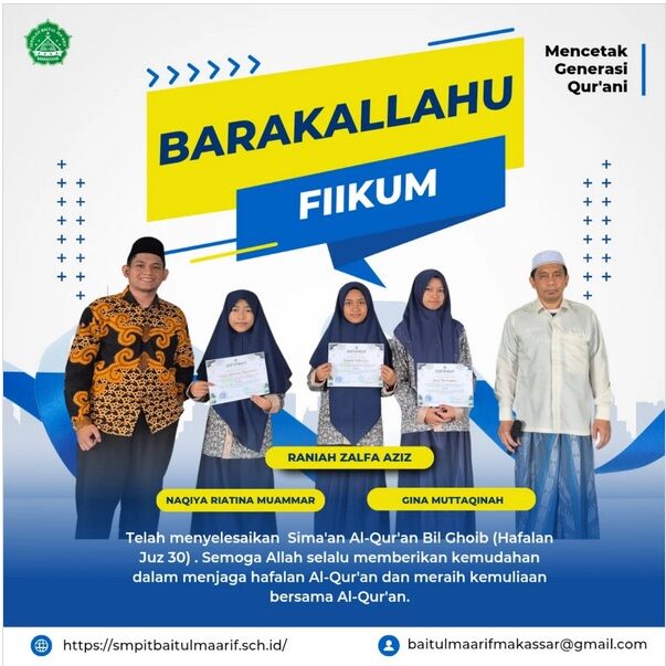 Selamat untuk Naqiya, Raniah, dan Gina! Semoga hafalan kalian menjadi cahaya penuntun di dunia dan akhirat.